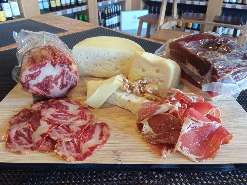 Queijo Amenteigado Vale do Côa, e/ou Presunto Ibérico, e/ou Cachaço Ibérico, e/ou Chouriça Tradicional da Guarda,